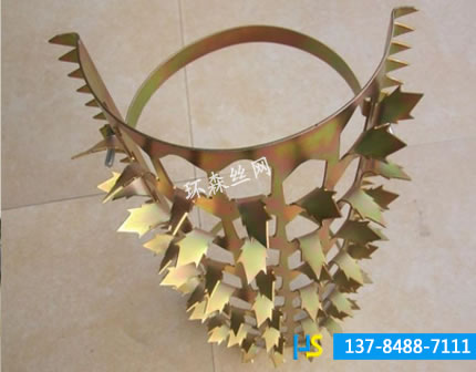 防爬刺的刺型為皇冠型,樣式美觀,刺密度大,采用沖壓成型,每顆刺型都要純手工彎扭,更加增加了刺的硬度和韌性。